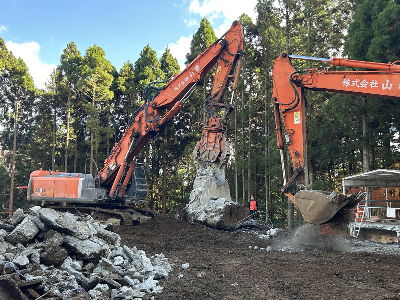 Demolishing Works: Demolishing the foundation of the temporary Komyo Kaikan and demolishing the foundation of rest area and storage.