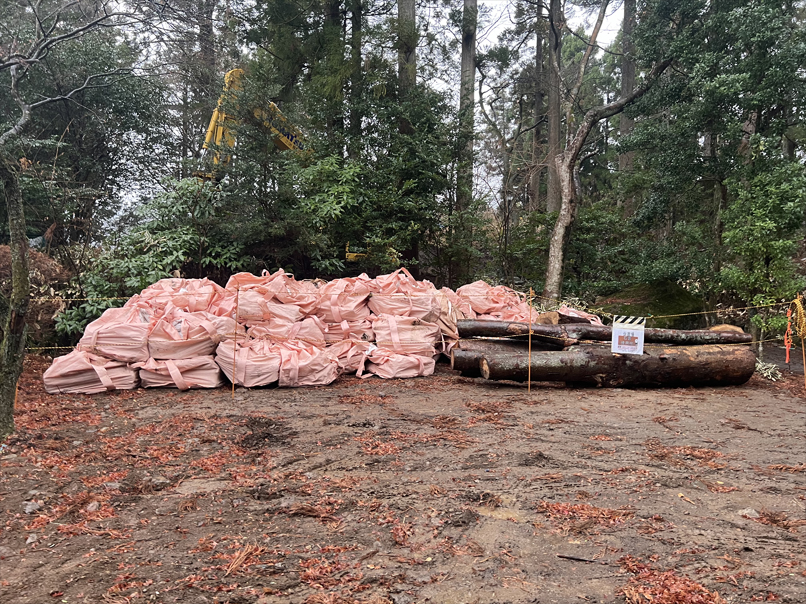 For repairing the roof of Nikko-den, its material (Akita cedar) will be prepared.
